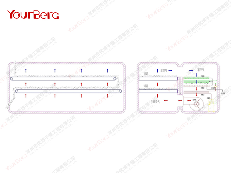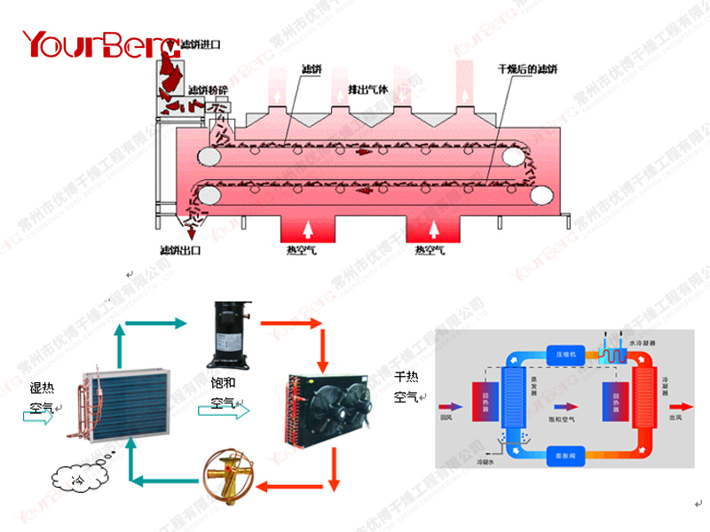 (3)除濕干化機(jī)相當(dāng)于除濕熱泵及網(wǎng)帶輸送機(jī)(帶式干燥);