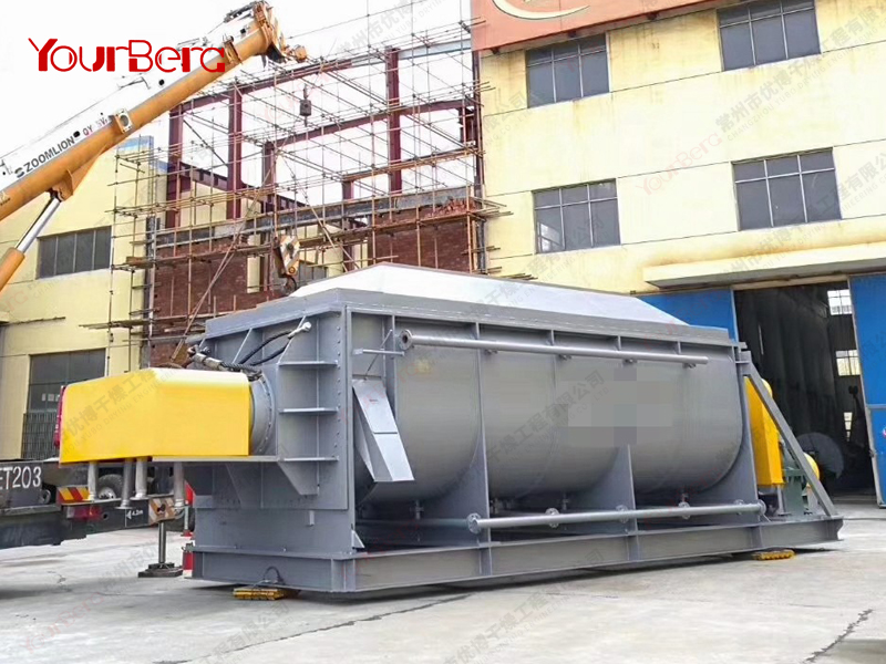 空心軸上密集排列著楔型中空漿葉,熱介質(zhì)經(jīng)空心軸流經(jīng)漿葉。單位有效容積內(nèi)傳熱面積很大,熱介質(zhì)溫度從-40℃到320℃,可以是水蒸汽,也可以是液體型:如熱水、導(dǎo)熱油等。間接傳導(dǎo)加熱,沒有攜帶空氣帶走熱量,熱量均用來加熱物料。熱量損失僅為通過器體保溫層向環(huán)境的散熱。楔型漿葉傳熱面具有自清潔功能。物料顆粒與楔型面的相對運動產(chǎn)生洗刷作用,能夠洗刷掉楔型面上附著物料,使運轉(zhuǎn)中一直保持著清潔的傳熱面。漿葉干燥機的殼體為Ω型,殼體內(nèi)一般安排二到四根空心攪拌軸。殼體有密封端蓋與上蓋,防止物料粉塵外泄而充分發(fā)揮作用。