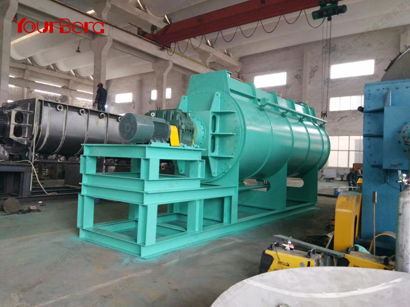 空心軸上密集排列著楔型中空漿葉,熱介質(zhì)經(jīng)空心軸流經(jīng)漿葉。單位有效容積內(nèi)傳熱面積很大,熱介質(zhì)溫度從-40℃到320℃,可以是水蒸汽,也可以是液體型:如熱水、導(dǎo)熱油等。間接傳導(dǎo)加熱,沒有攜帶空氣帶走熱量,熱量均用來加熱物料。熱量損失僅為通過器體保溫層向環(huán)境的散熱。楔型漿葉傳熱面具有自清潔功能。物料顆粒與楔型面的相對(duì)運(yùn)動(dòng)產(chǎn)生洗刷作用,能夠洗刷掉楔型面上附著物料,使運(yùn)轉(zhuǎn)中一直保持著清潔的傳熱面。漿葉干燥機(jī)的殼體為Ω型,殼體內(nèi)一般安排二到四根空心攪拌軸。殼體有密封端蓋與上蓋,防止物料粉塵外泄而充分發(fā)揮作用。