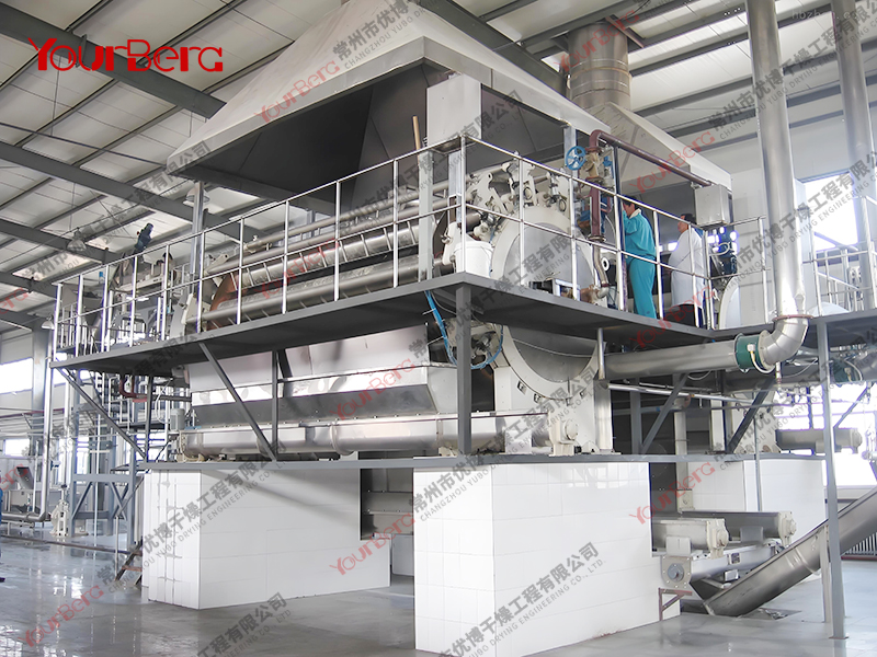 3、啟動電機,主滾筒動運轉平穩(wěn),溫度升高后加入物料后調整電機轉速及物料在滾筒上薄膜均勻程度來控制物料終含水量。