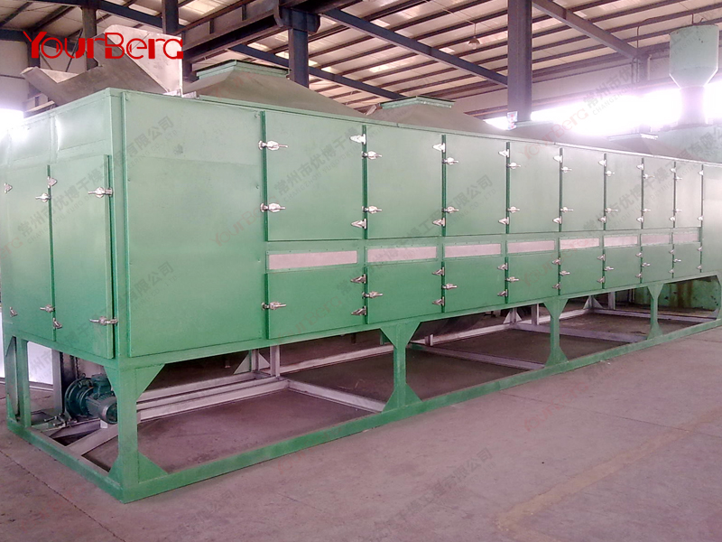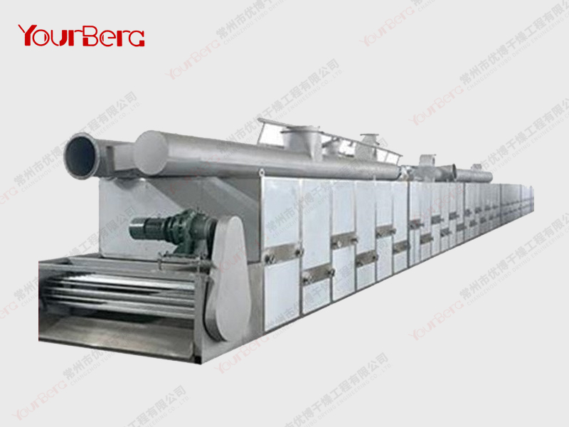 (1)物料在帶干機上受到的振動和沖擊輕微,物料顆粒不易粉化破碎,因此也適用于干燥某些不允許碎裂的物料。