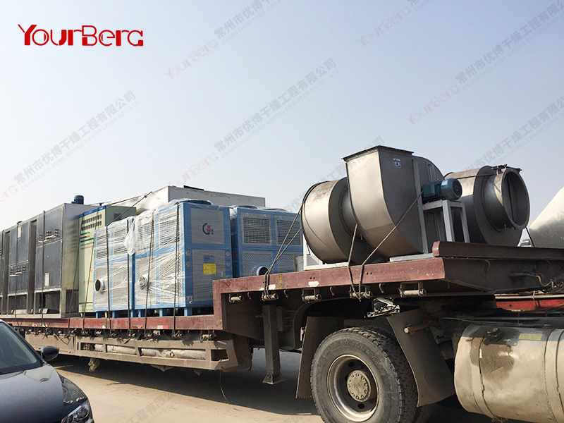 (4)沖擊式帶式干燥機:沖擊式帶干機適用于干燥織物、煙葉、基材的表面涂層及其他薄片狀物料。沖擊式帶機通常由兩條輸送帶組成。沖擊式帶機可分隔成單元段進行獨立控制。干燥介質(zhì)增濕后,部分排出,另部分返回摻入新鮮干燥介質(zhì)后再行循環(huán)。