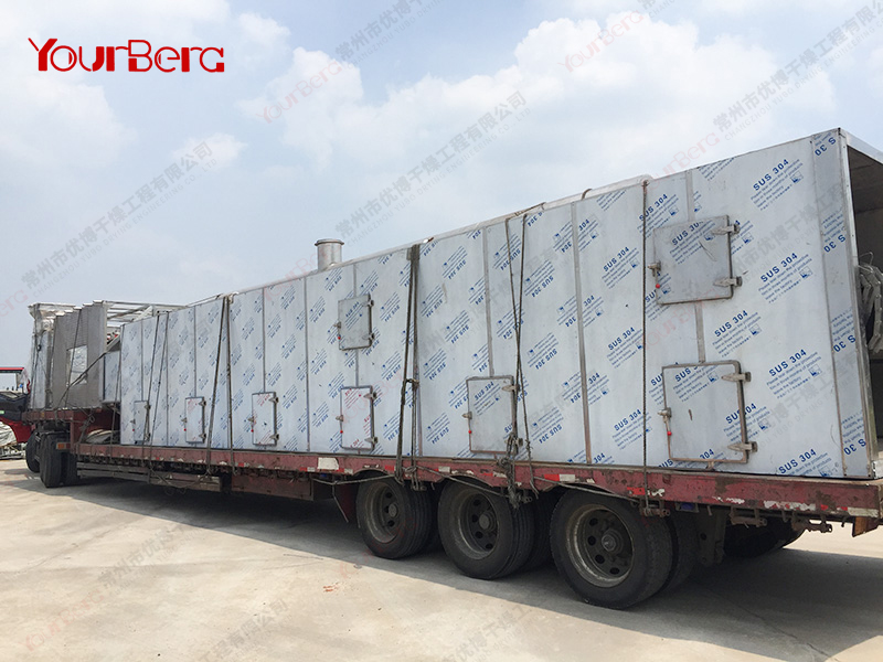 (3)多層帶式干燥機:多層帶干機常用于干燥速度要求較低、干燥時間較長,在整個干燥過程中工藝操作條件能保持恒定的場合。層間設(shè)置隔板以組織干燥介質(zhì)的定向流動,使物料干燥均勻。多層帶干機占地少,結(jié)構(gòu)簡單,廣泛使用于干燥谷物類物料。但由于操作中要多次裝料和卸料,因此不適用于干燥易粘著輸送帶及不允許碎裂的物料。