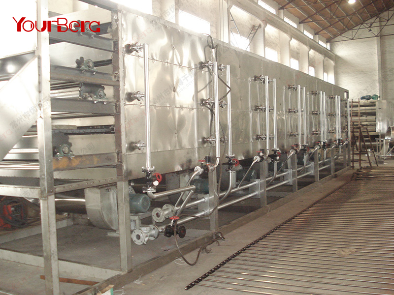 DW系列多層帶式干燥機(jī)是成批生產(chǎn)用的連續(xù)式干燥設(shè)備,用于透氣性較好的片狀、條狀、顆粒狀物料的干燥,對(duì)于脫水蔬菜、催化劑、中藥飲片等類含水率高、而溫度不允許高的物料尤為合適;該系列干燥機(jī)具有干燥速度快、蒸發(fā)強(qiáng)度高、產(chǎn)品質(zhì)量好的優(yōu)點(diǎn),對(duì)脫水濾餅狀的膏狀物料,需經(jīng)造?;蛑瞥蓷l狀后方可干燥。
