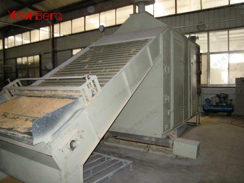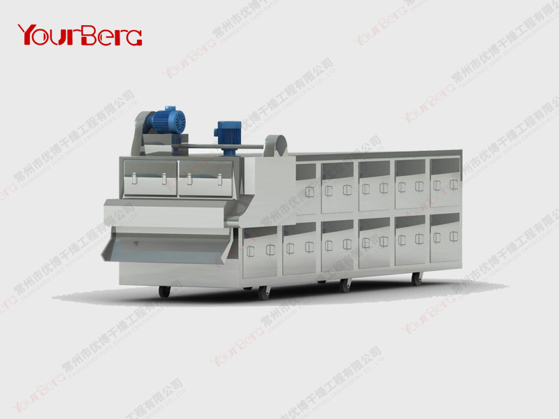 2、干燥機工作時,冷空氣通過熱交換器進行加熱,采用科學合理循環(huán)方式,使熱空氣穿流通過床面上的被干燥物料進行均勻的熱質(zhì)交換,機體各單元內(nèi)熱氣流在循環(huán)風機的作用下進行熱風循環(huán),后排出低溫高濕度的空氣,平穩(wěn)高效地完成整個干燥過程。