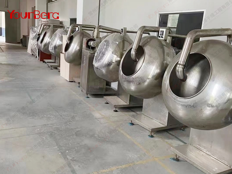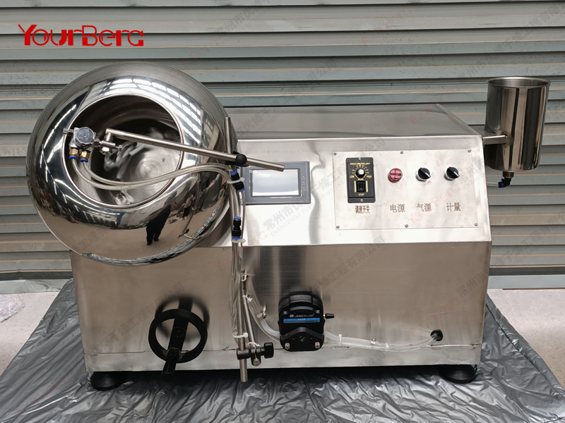本機(jī)用以制藥、食品行業(yè)為片劑、丸劑包裹糖衣。也可用作滾抄豆、果品類成熟之用。其特點(diǎn)是糖衣球的傾斜角度為水平向上30度,球下可以放置電爐、煤氣等直接加熱設(shè)備。隨機(jī)附單獨(dú)的電熱式鼓風(fēng)機(jī),出風(fēng)管伸入球內(nèi)可作加熱或吹冷,熱量可以分二檔調(diào)節(jié)??筛鶕?jù)客戶需求,增加變頻調(diào)速、外加熱、溫度控制、噴液系統(tǒng)等用以包制薄膜藥片。BYF系列薄膜包衣機(jī)是根據(jù)客戶需要在BY系列荸薺式糖衣機(jī)基礎(chǔ)上改進(jìn)而來(lái),分無(wú)極轉(zhuǎn)速和固定轉(zhuǎn)速倆種型號(hào),(每分鐘5-50轉(zhuǎn)可調(diào))。配有噴槍、支架、儲(chǔ)液罐和帶變頻器的電器箱。
