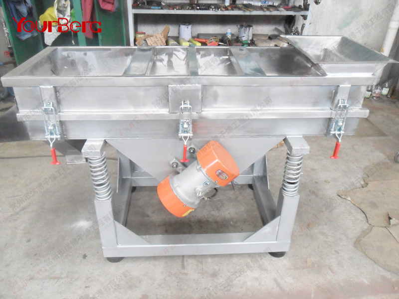 本機(jī)上部采用快拆式手柄,把整機(jī)連成一個(gè)整體,上蓋全密封、有效防止物料在過篩時(shí)由于振動(dòng)而產(chǎn)生粉塵飛揚(yáng)。篩體下部安裝振動(dòng)電機(jī),有效保證了物料的結(jié)構(gòu)緊湊,下部采用彈簧減振,使整機(jī)在平穩(wěn)狀態(tài)下工作。下面底座采用可調(diào)式,可調(diào)節(jié)正在過篩時(shí)的篩面傾斜角度,根據(jù)物料特性以取得過篩效果。
